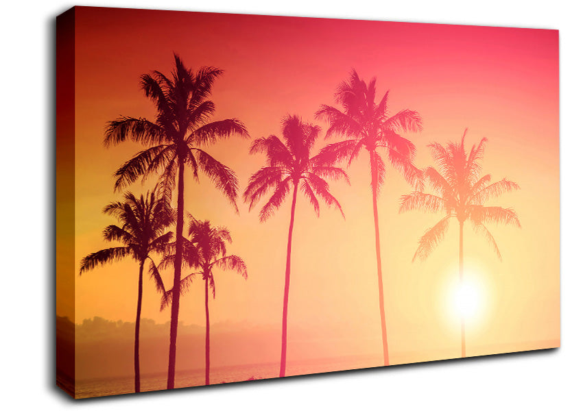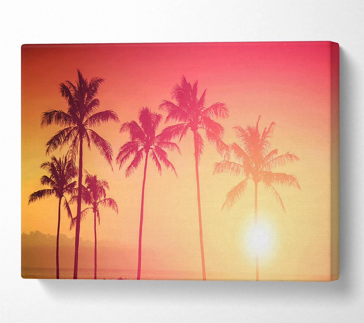 Palm Tree Haze Canvas Print handmade in the UK. Stretched over a 2 inch thick wooden box frame, ready to hang on your wall.