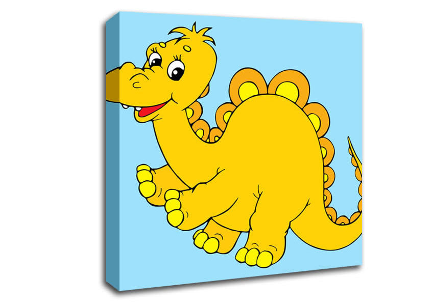 Big Happy Dinosaur Baby Blue Square Canvas Print handmade in the UK. Stretched over a 2 inch thick wooden box frame, ready to hang on your wall.