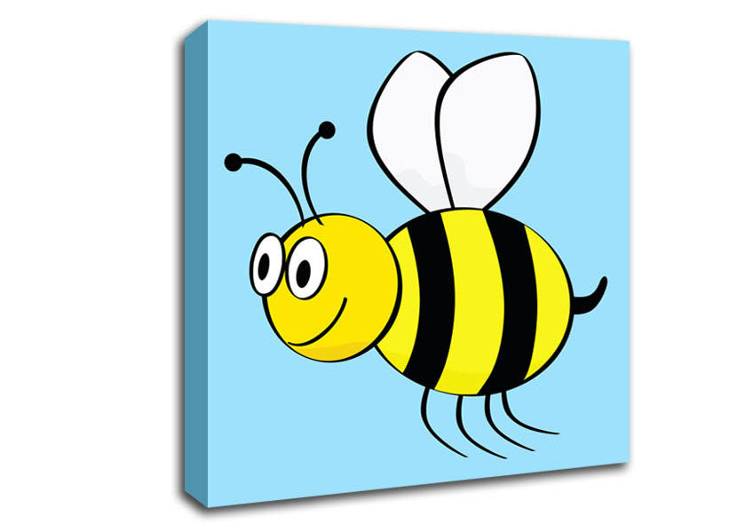 Buzzing Bee Baby Blue Square Canvas Print handmade in the UK. Stretched over a 2 inch thick wooden box frame, ready to hang on your wall.