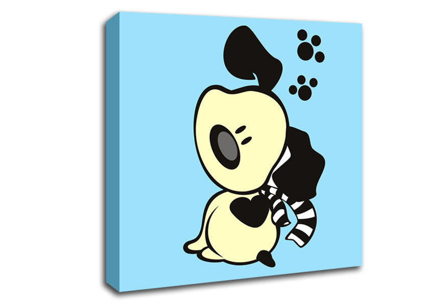 Dog Paw Print Scarf Baby Blue Square Canvas Print handmade in the UK. Stretched over a 2 inch thick wooden box frame, ready to hang on your wall.