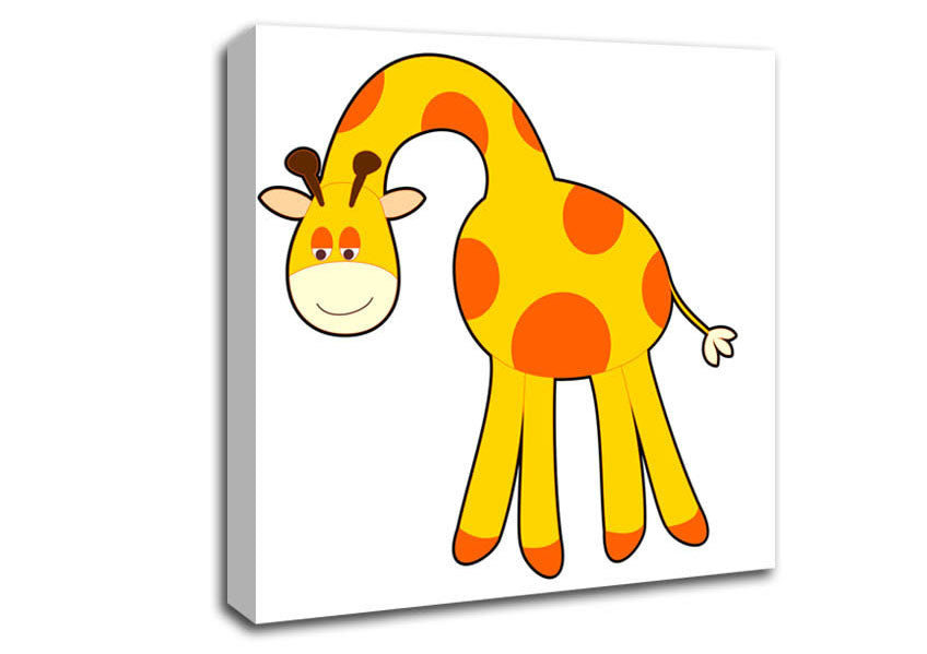 Funny Giraffe Looking Down White Square Canvas Print handmade in the UK. Stretched over a 2 inch thick wooden box frame, ready to hang on your wall.