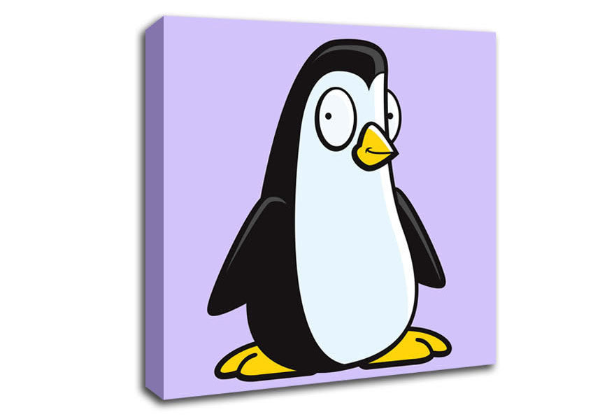 Funny Penguin Lilac Square Canvas Print handmade in the UK. Stretched over a 2 inch thick wooden box frame, ready to hang on your wall.