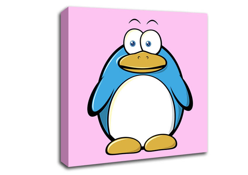 Funny Penquin Standing Pink Square Canvas Print handmade in the UK. Stretched over a 2 inch thick wooden box frame, ready to hang on your wall.