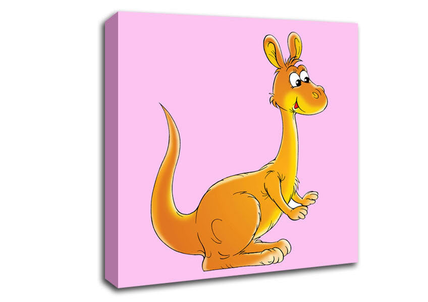 Fuzzy Kangeroo Pink Square Canvas Print handmade in the UK. Stretched over a 2 inch thick wooden box frame, ready to hang on your wall.