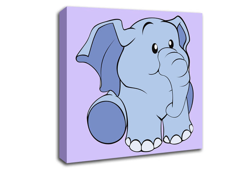 Happy Baby Elephant Lilac Square Canvas Print handmade in the UK. Stretched over a 2 inch thick wooden box frame, ready to hang on your wall.