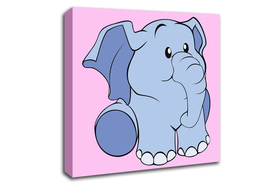 Happy Baby Elephant Pink Square Canvas Print handmade in the UK. Stretched over a 2 inch thick wooden box frame, ready to hang on your wall.
