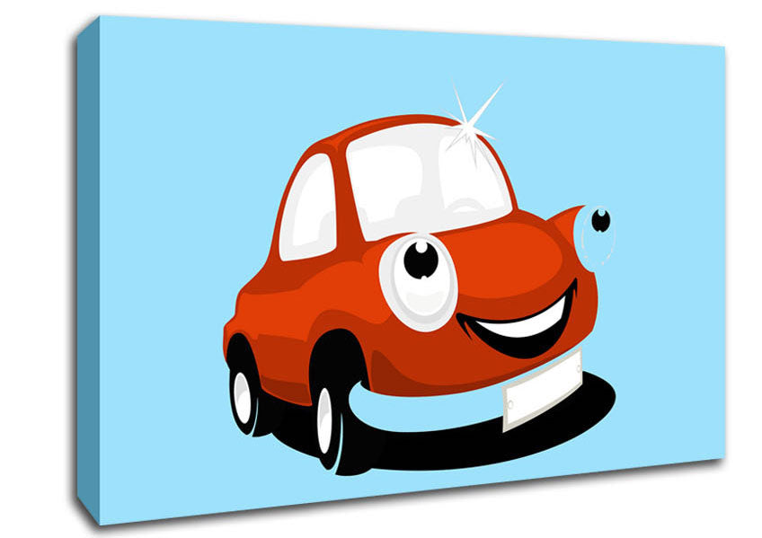 Smiling Clean Car Baby Blue Canvas Print handmade in the UK. Stretched over a 2 inch thick wooden box frame, ready to hang on your wall.