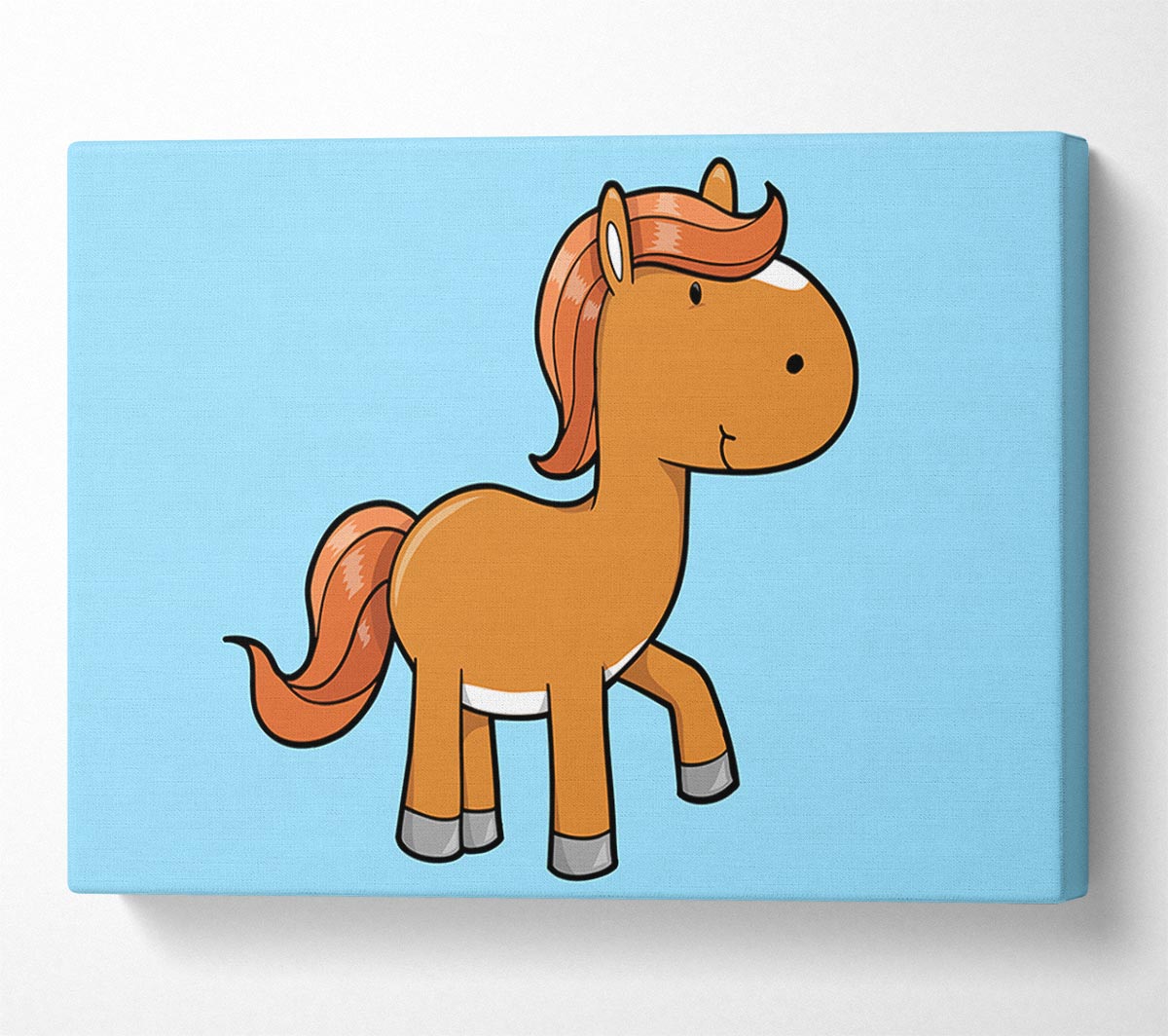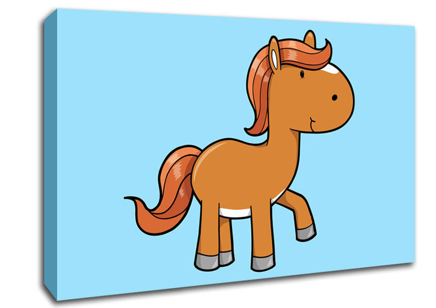 Walking Pony Horse Baby Blue Canvas Print handmade in the UK. Stretched over a 2 inch thick wooden box frame, ready to hang on your wall.