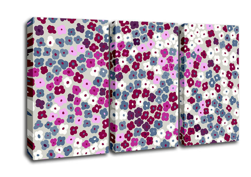 Flora Mayhem 3 Panel Canvas Print handmade in the UK. Stretched over a 2 inch thick wooden box frame, ready to hang on your wall.