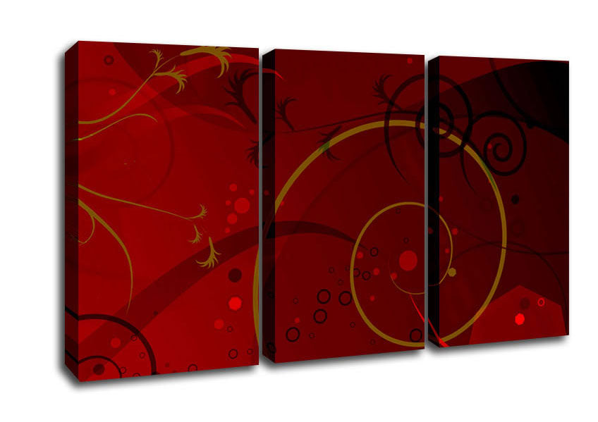 Maroon Galore 3 Panel Canvas Print handmade in the UK. Stretched over a 2 inch thick wooden box frame, ready to hang on your wall.