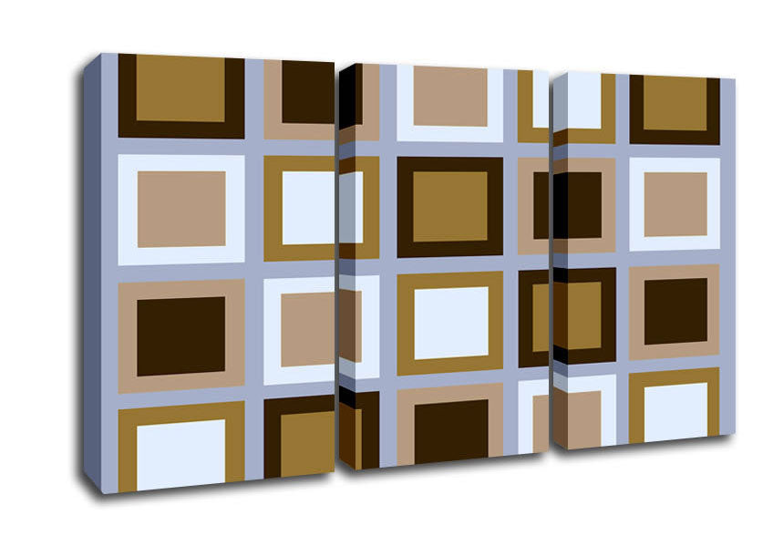 Squared In Square 3 Panel Canvas Print handmade in the UK. Stretched over a 2 inch thick wooden box frame, ready to hang on your wall.