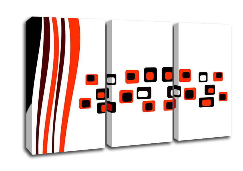 Squares And Stripes 3 Panel Canvas Print handmade in the UK. Stretched over a 2 inch thick wooden box frame, ready to hang on your wall.