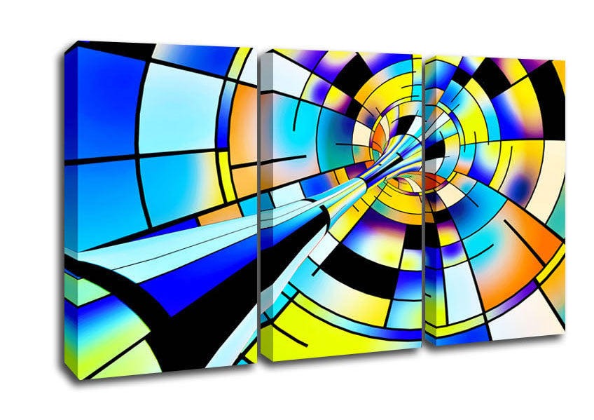 Time Tunnel 3 Panel Canvas Print handmade in the UK. Stretched over a 2 inch thick wooden box frame, ready to hang on your wall.