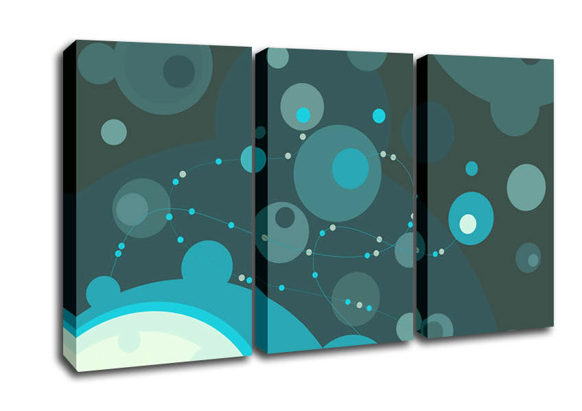 Turquoise Splash 3 Panel Canvas Print handmade in the UK. Stretched over a 2 inch thick wooden box frame, ready to hang on your wall.