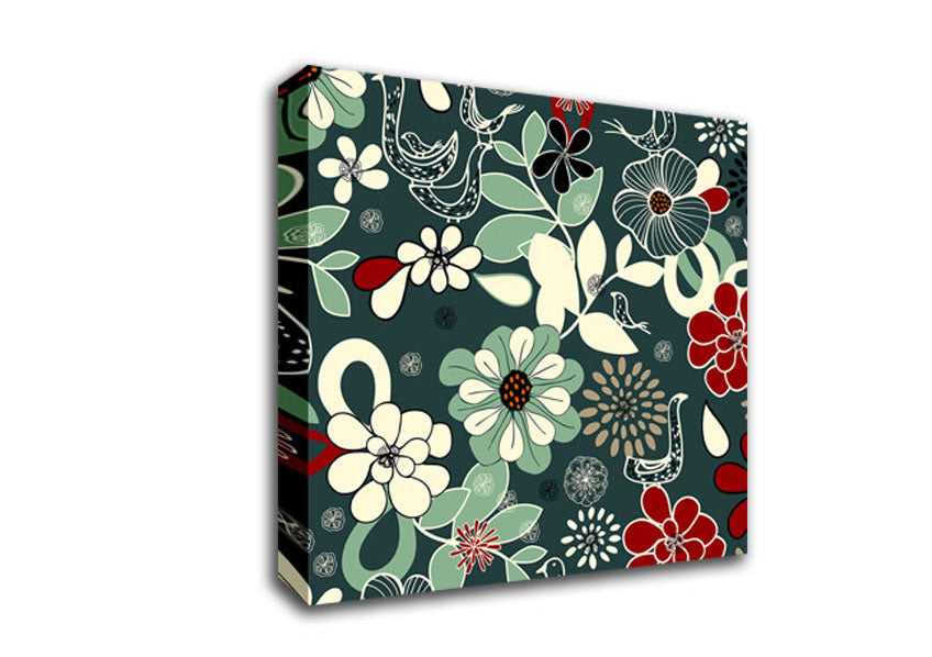 Intertwined Flowers Square Canvas Print handmade in the UK. Stretched over a 2 inch thick wooden box frame, ready to hang on your wall.