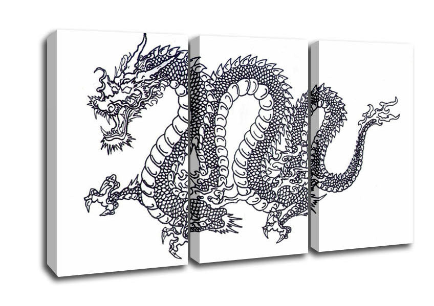 Chinese Dragon 3 Panel Canvas Print handmade in the UK. Stretched over a 2 inch thick wooden box frame, ready to hang on your wall.