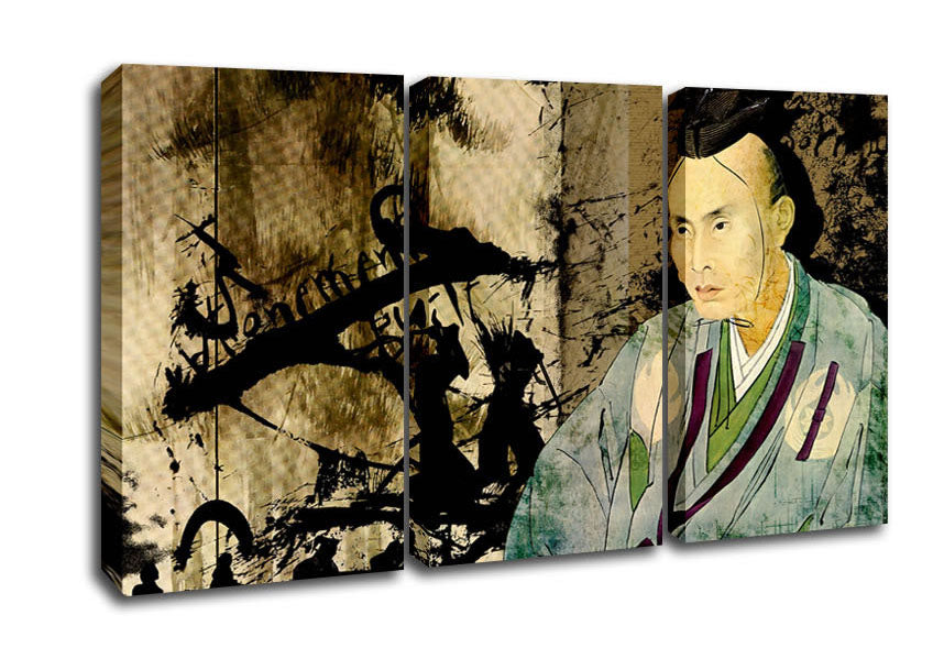 Japanese Kuniyoshi 3 Panel Canvas Print handmade in the UK. Stretched over a 2 inch thick wooden box frame, ready to hang on your wall.