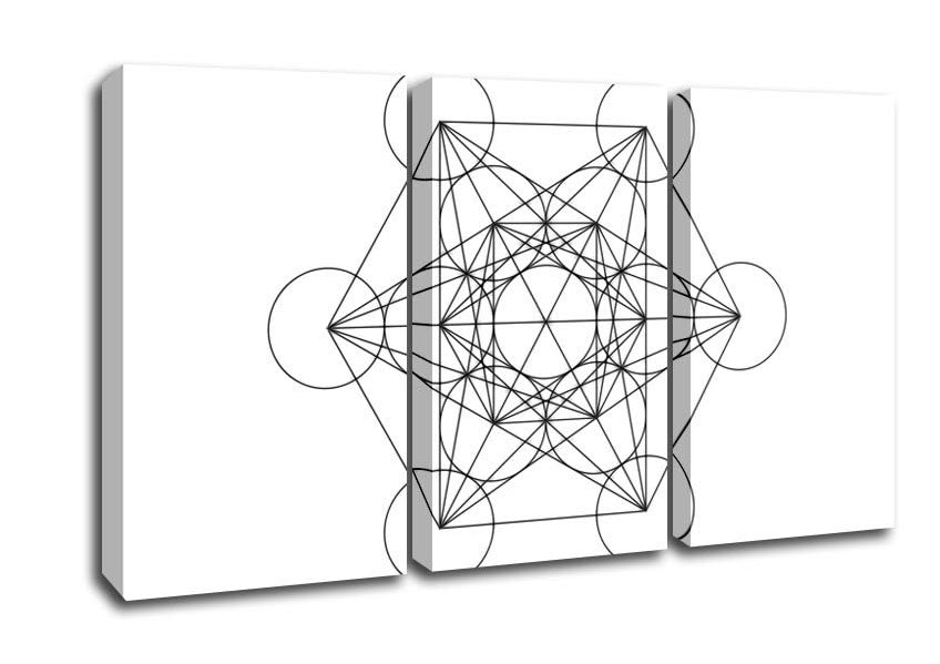 Metatrons Cube Drawing 3 Panel Canvas Print handmade in the UK. Stretched over a 2 inch thick wooden box frame, ready to hang on your wall.
