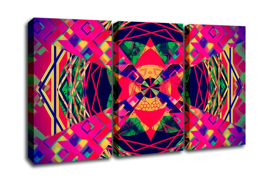 Scared Geo 3 Panel Canvas Print handmade in the UK. Stretched over a 2 inch thick wooden box frame, ready to hang on your wall.