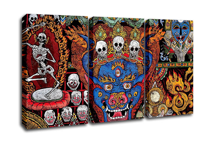 Tibetan Art 3 Panel Canvas Print handmade in the UK. Stretched over a 2 inch thick wooden box frame, ready to hang on your wall.