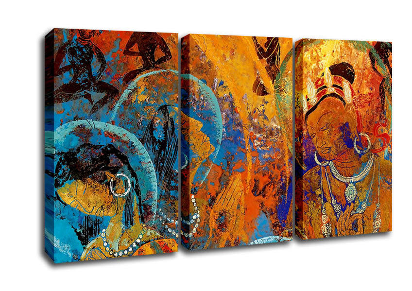 Tibetan Buddhist 3 Panel Canvas Print handmade in the UK. Stretched over a 2 inch thick wooden box frame, ready to hang on your wall.