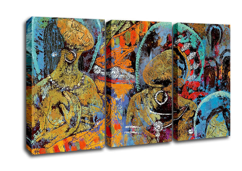 Tibetan Tribal 3 Panel Canvas Print handmade in the UK. Stretched over a 2 inch thick wooden box frame, ready to hang on your wall.