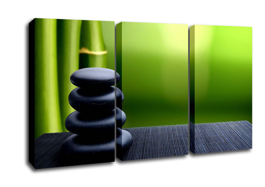 Zen Stones Background 3 Panel Canvas Print handmade in the UK. Stretched over a 2 inch thick wooden box frame, ready to hang on your wall.