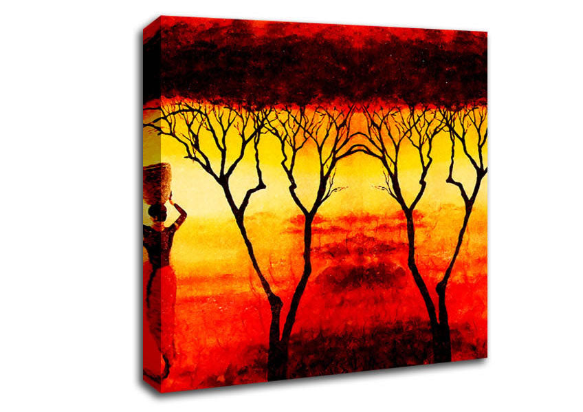 African Women Working In The Blazing Red Fields Square Canvas Print handmade in the UK. Stretched over a 2 inch thick wooden box frame, ready to hang on your wall.