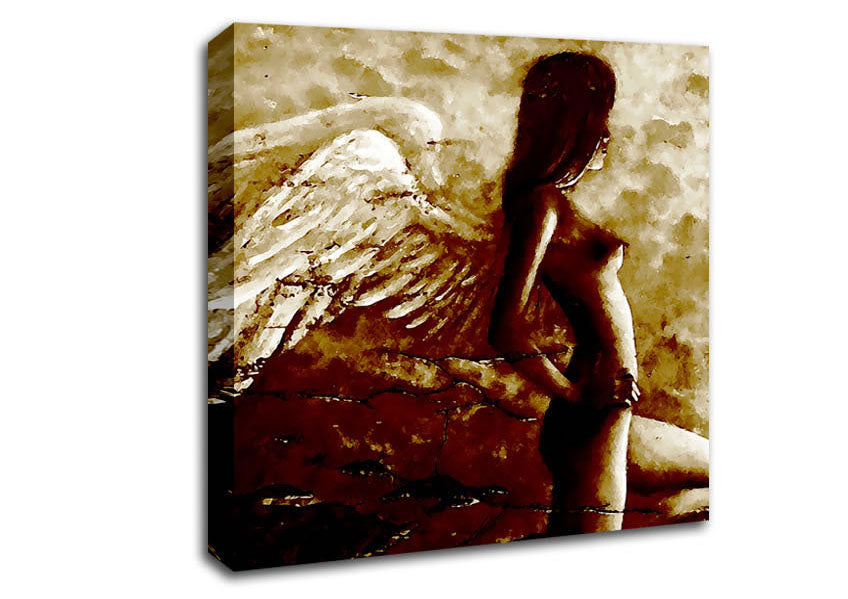 Brown Winged Angel Square Canvas Print handmade in the UK. Stretched over a 2 inch thick wooden box frame, ready to hang on your wall.