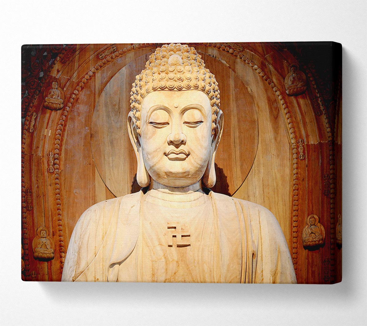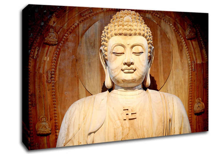 Buddha Face Statue Canvas Print handmade in the UK. Stretched over a 2 inch thick wooden box frame, ready to hang on your wall.