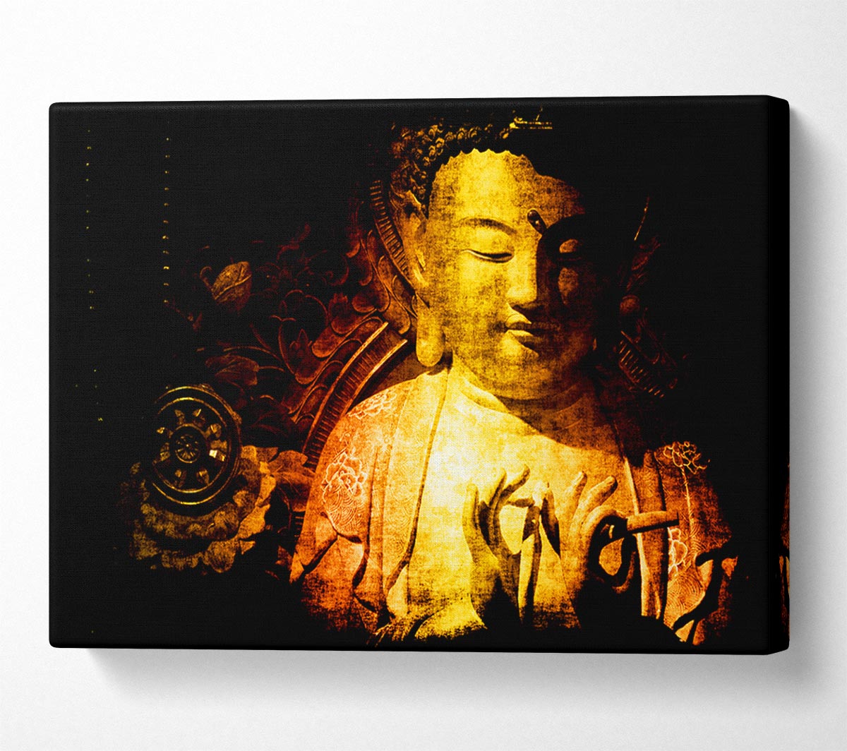 Buddha Meditating Canvas Print handmade in the UK. Stretched over a 2 inch thick wooden box frame, ready to hang on your wall.