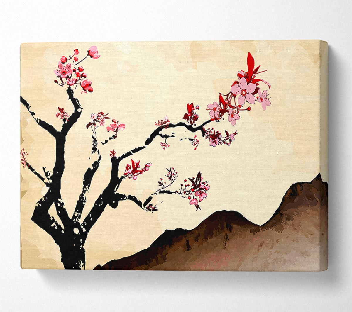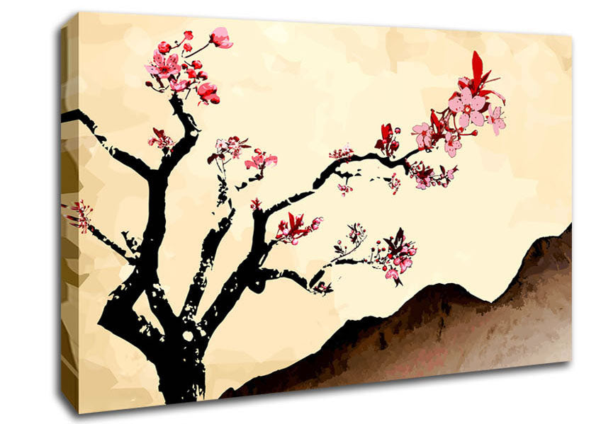 Cherry Blossom Brown Canvas Print handmade in the UK. Stretched over a 2 inch thick wooden box frame, ready to hang on your wall.