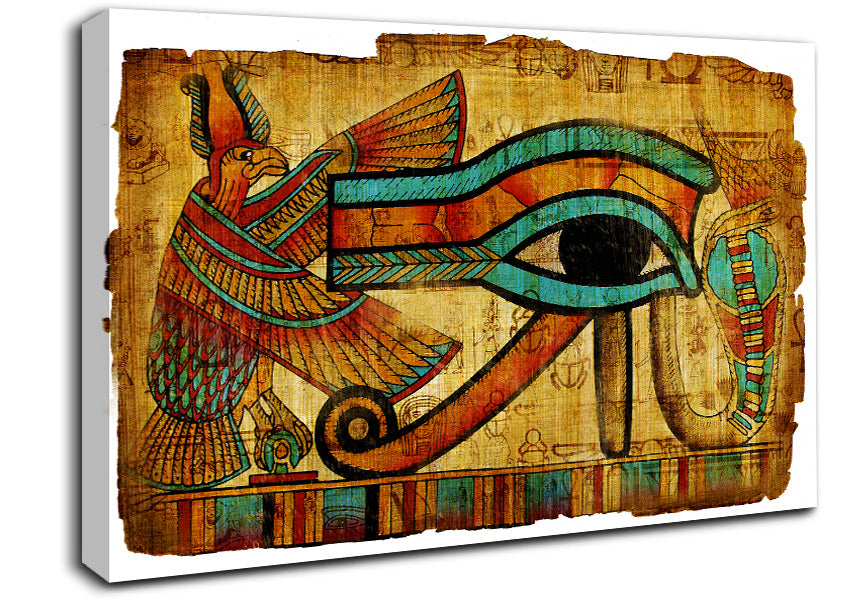 Egyptian The Eye Of Horus Canvas Print handmade in the UK. Stretched over a 2 inch thick wooden box frame, ready to hang on your wall.