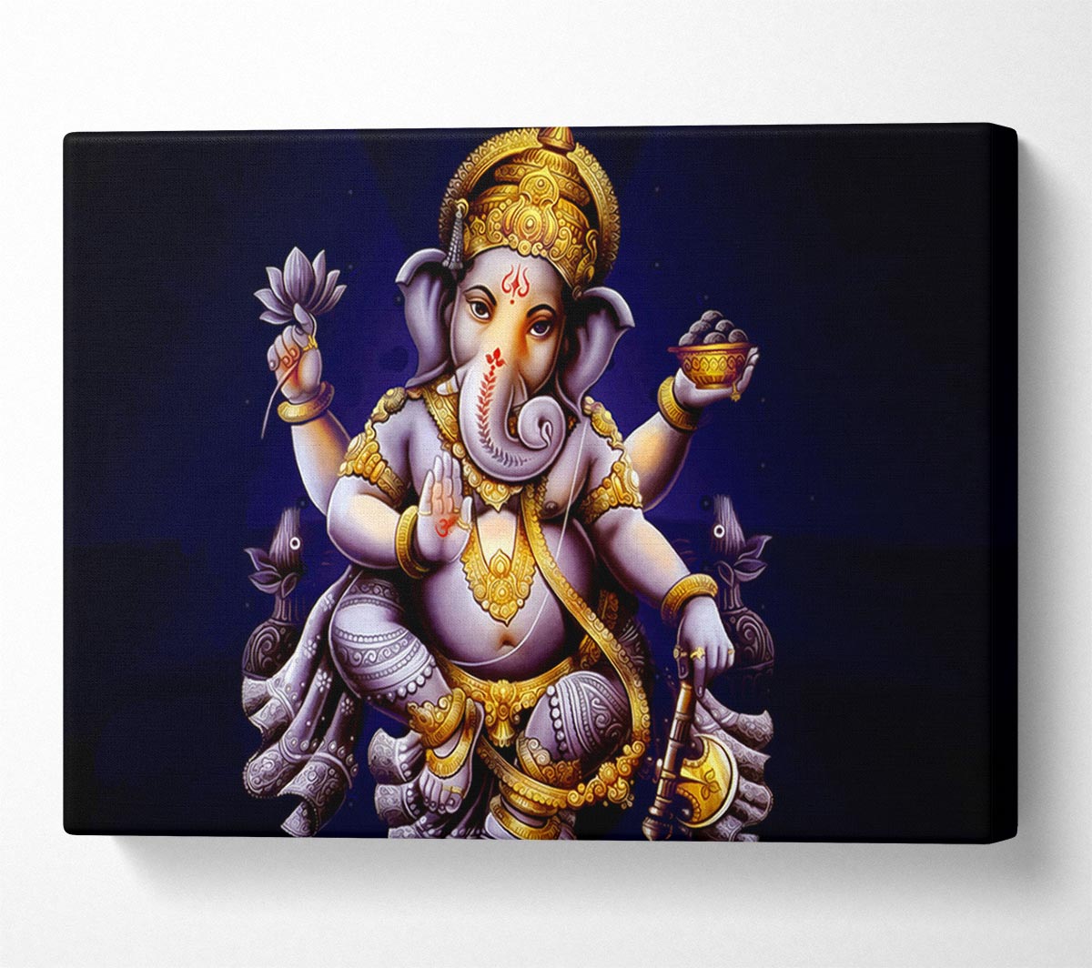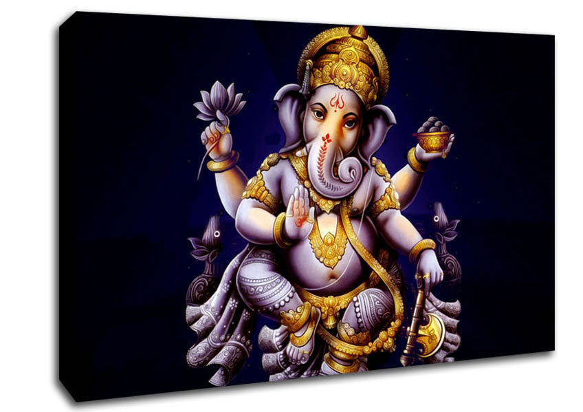Hindu Ganesh Canvas Print handmade in the UK. Stretched over a 2 inch thick wooden box frame, ready to hang on your wall.