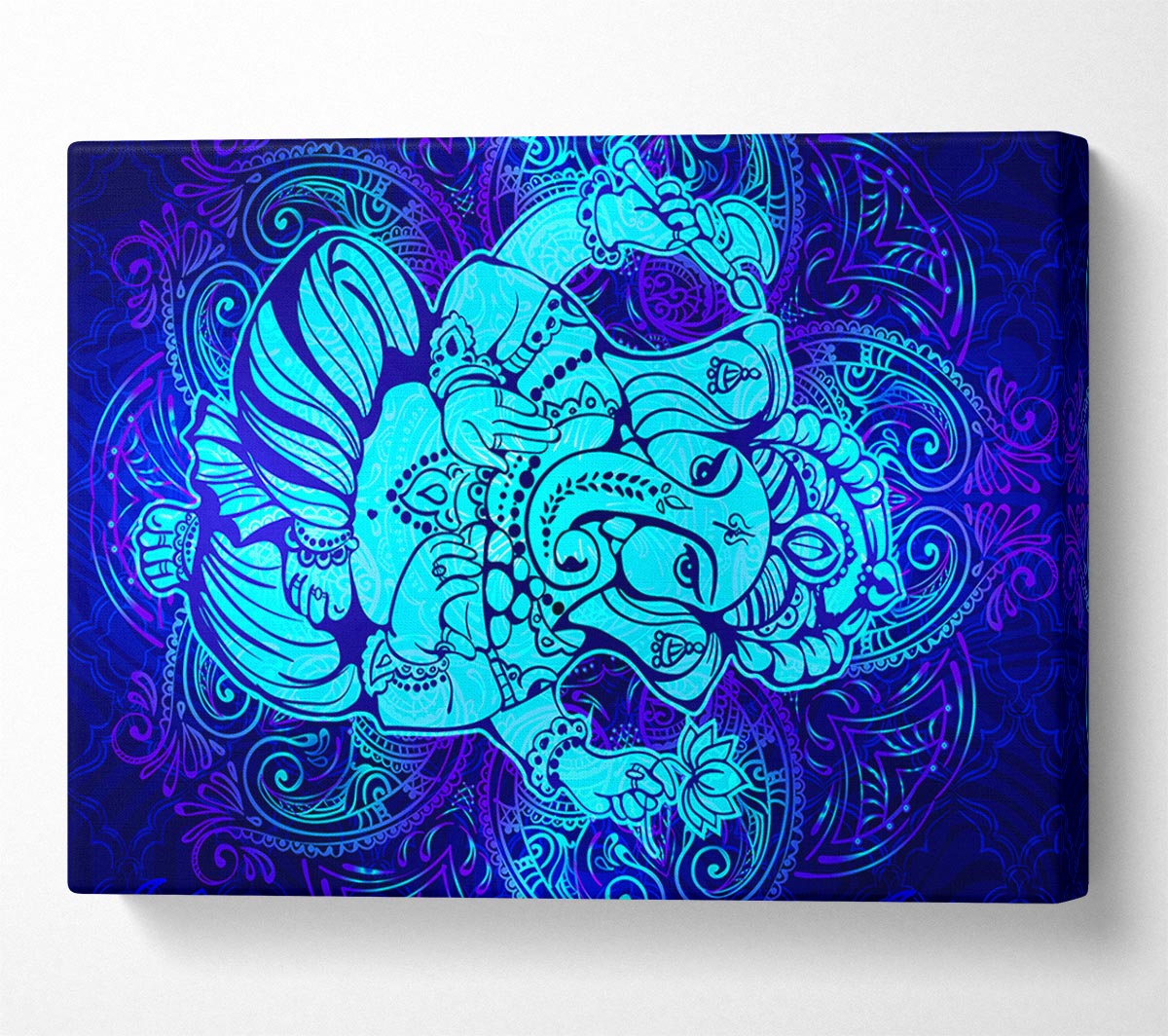 Hindu God Ganesha 4 Canvas Print handmade in the UK. Stretched over a 2 inch thick wooden box frame, ready to hang on your wall.