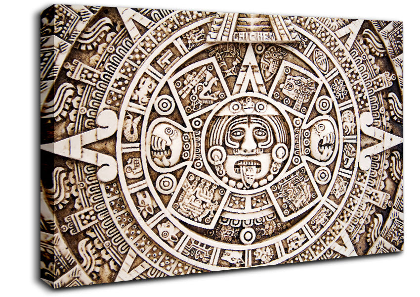 Mayan Sun 2 Canvas Print handmade in the UK. Stretched over a 2 inch thick wooden box frame, ready to hang on your wall.