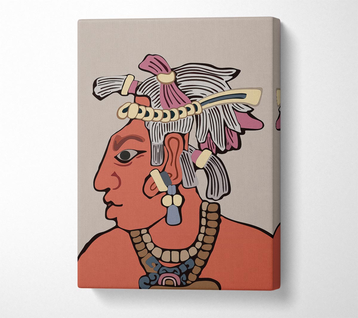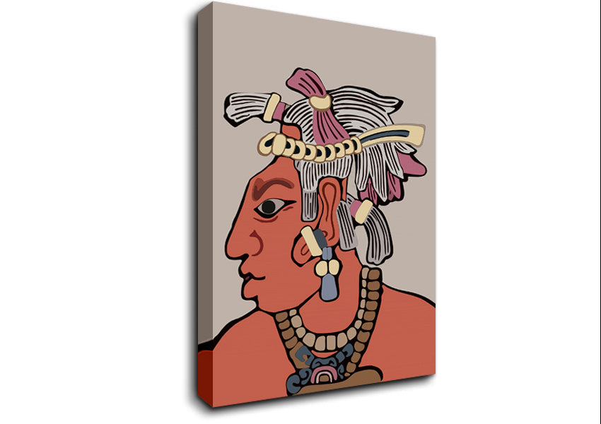 Mayan warrior Canvas Print handmade in the UK. Stretched over a 2 inch thick wooden box frame, ready to hang on your wall.