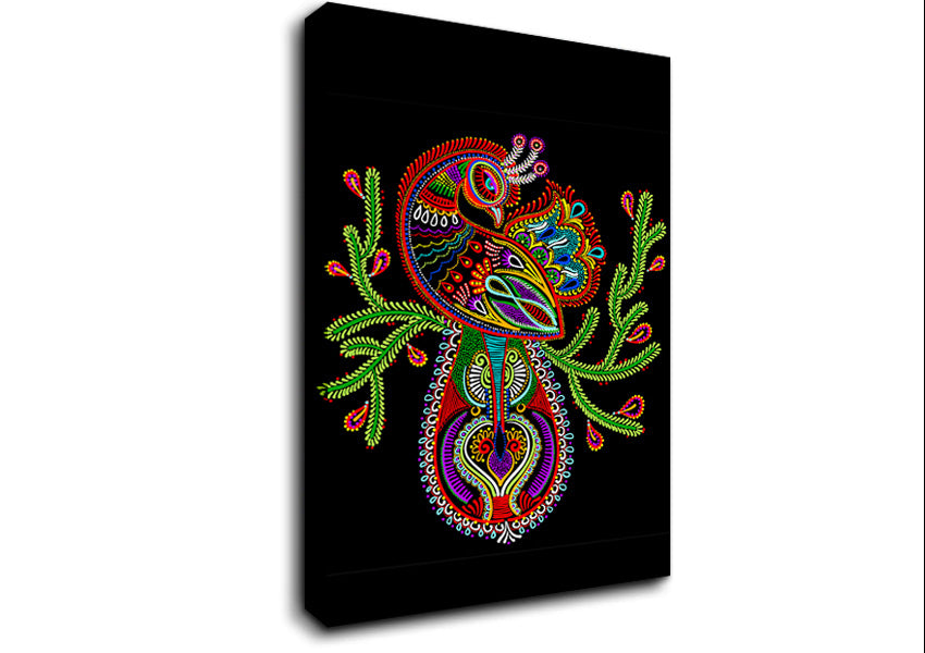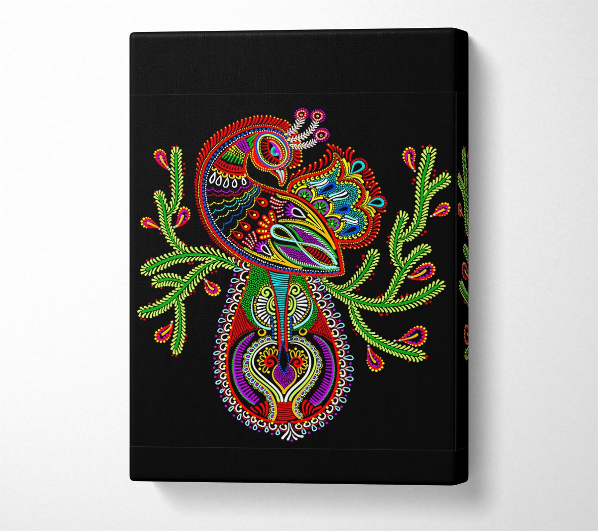 Mexican Bird Canvas Print handmade in the UK. Stretched over a 2 inch thick wooden box frame, ready to hang on your wall.