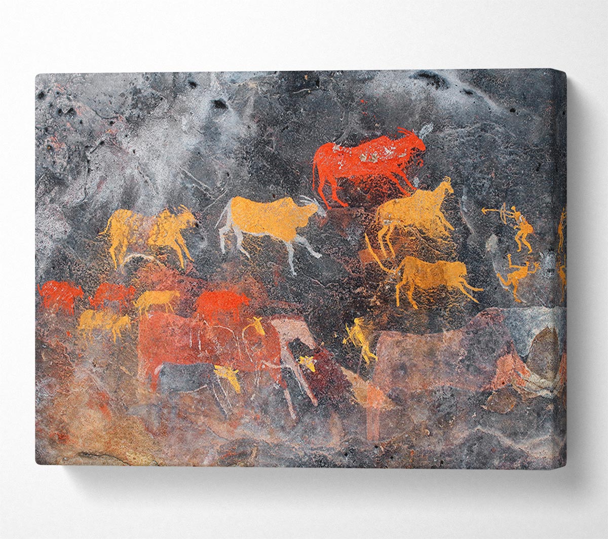 Primative Cave Art 1 Canvas Print handmade in the UK. Stretched over a 2 inch thick wooden box frame, ready to hang on your wall.
