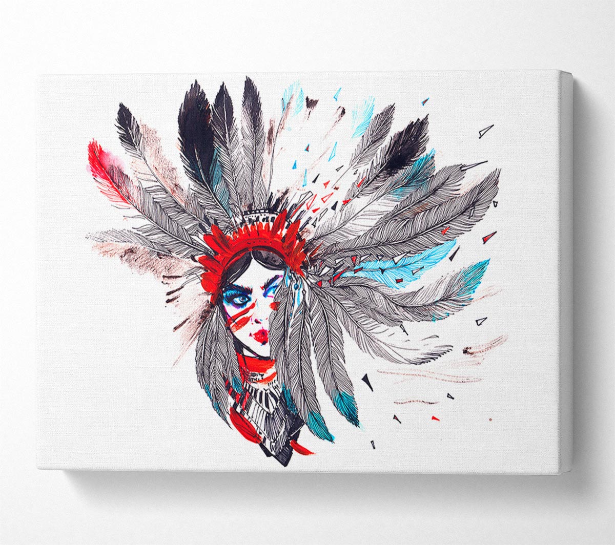 Red Indian Head Dress Canvas Print handmade in the UK. Stretched over a 2 inch thick wooden box frame, ready to hang on your wall.