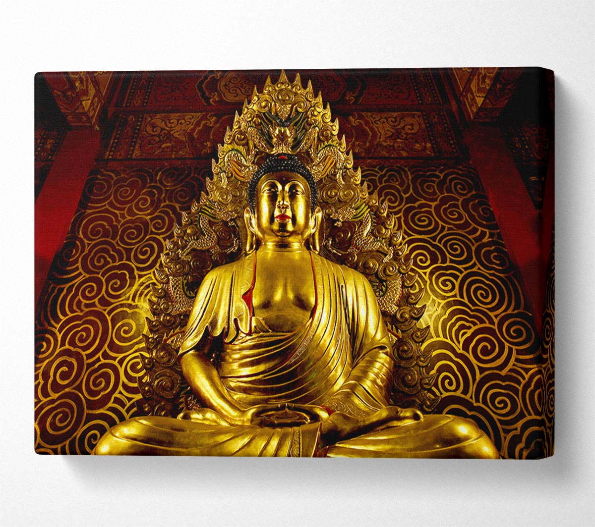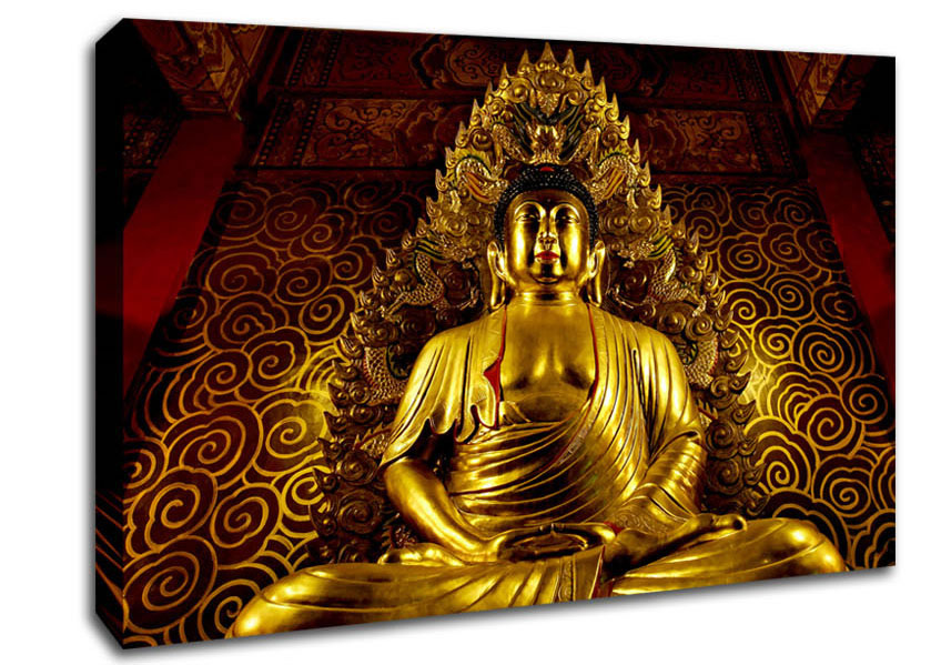 Thai Golden Buddha Canvas Print handmade in the UK. Stretched over a 2 inch thick wooden box frame, ready to hang on your wall.