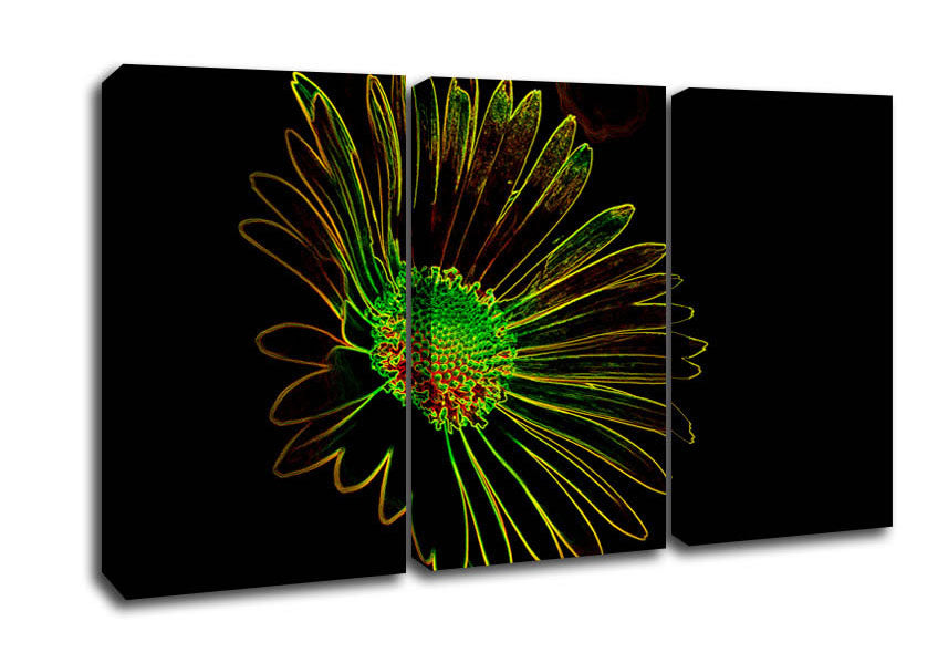 Abstarct Neon Floral 13 3 Panel Canvas Print handmade in the UK. Stretched over a 2 inch thick wooden box frame, ready to hang on your wall.
