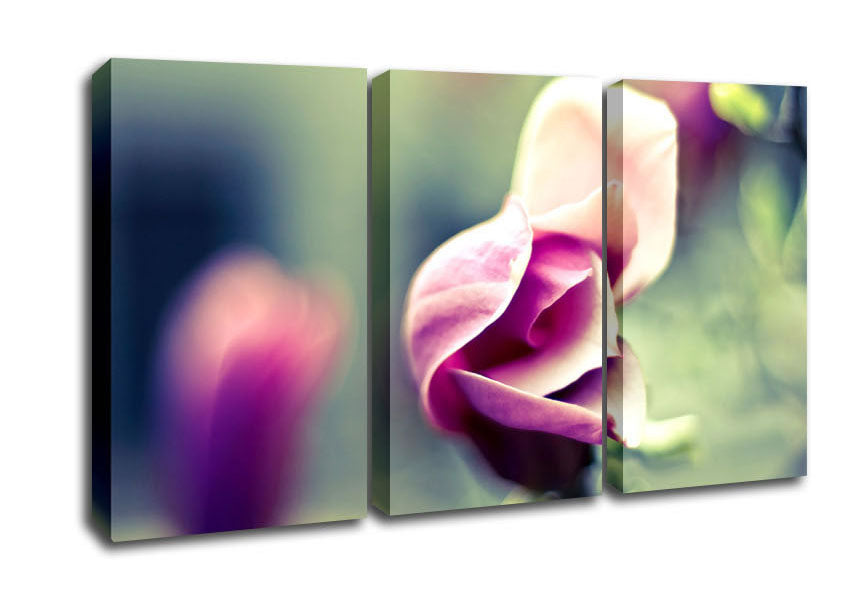 Bloom 3 Panel Canvas Print handmade in the UK. Stretched over a 2 inch thick wooden box frame, ready to hang on your wall.