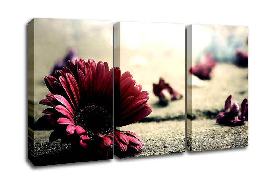 Missing Petals 3 Panel Canvas Print handmade in the UK. Stretched over a 2 inch thick wooden box frame, ready to hang on your wall.