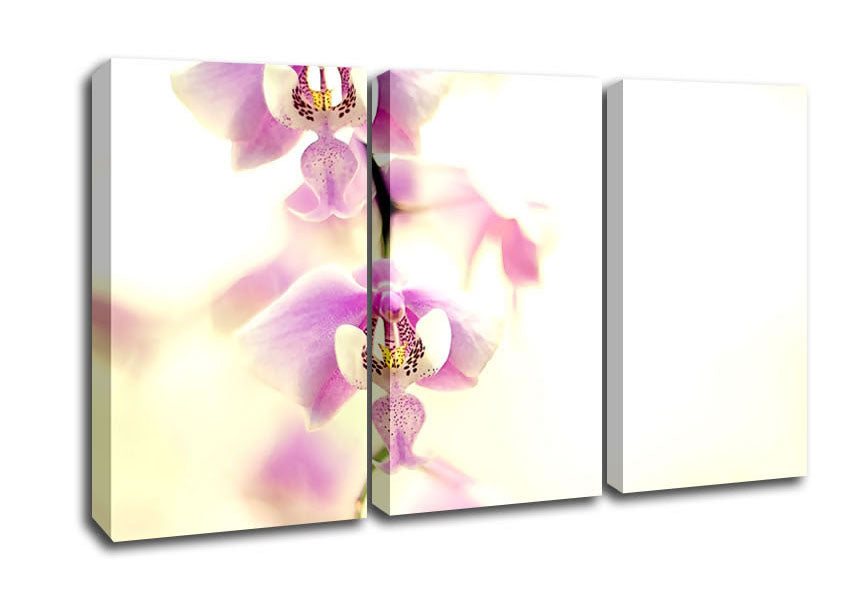 Orchid Pinks 3 Panel Canvas Print handmade in the UK. Stretched over a 2 inch thick wooden box frame, ready to hang on your wall.