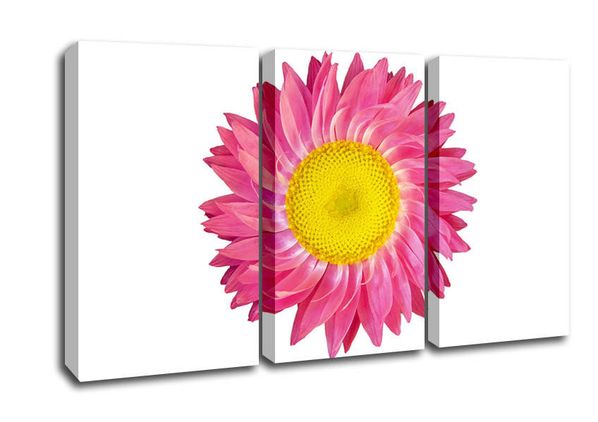 Pink Daisy Twist 3 Panel Canvas Print handmade in the UK. Stretched over a 2 inch thick wooden box frame, ready to hang on your wall.