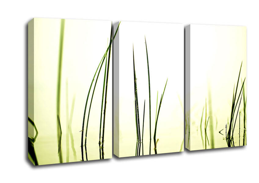 Water Grass 3 Panel Canvas Print handmade in the UK. Stretched over a 2 inch thick wooden box frame, ready to hang on your wall.