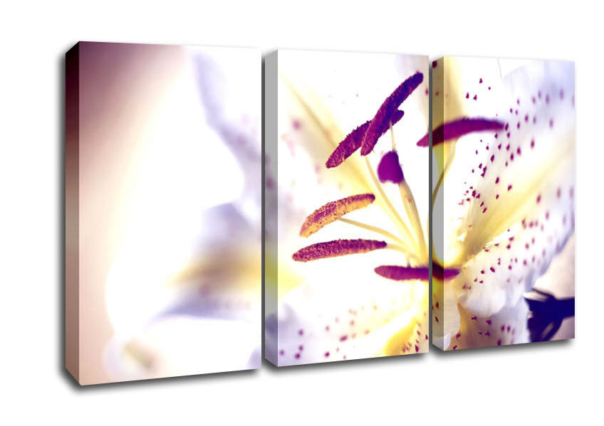 White Tiger Lily 3 Panel Canvas Print handmade in the UK. Stretched over a 2 inch thick wooden box frame, ready to hang on your wall.