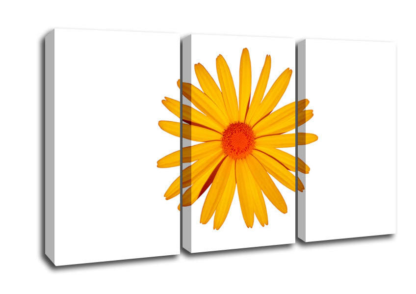 Yellow Daisy Face 3 Panel Canvas Print handmade in the UK. Stretched over a 2 inch thick wooden box frame, ready to hang on your wall.
