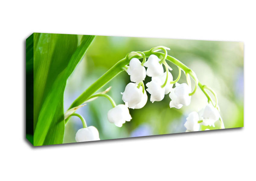 Lily Of The Valley Panoramic Canvas Print handmade in the UK. Stretched over a 2 inch thick wooden box frame, ready to hang on your wall.